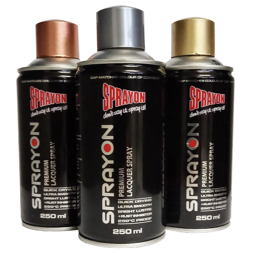Sprayon’s Metallic range consists of 13 attractive metallic finishes in the 250ml size and 3 of the most popular colours in the 350ml size.