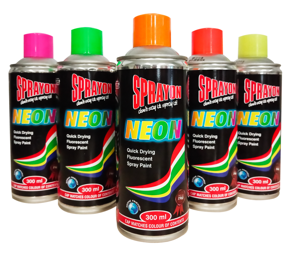 Spray Neon is a bright fluorescent spray paint available in a range of 7 quick drying colours in 250ml aerosol cans.